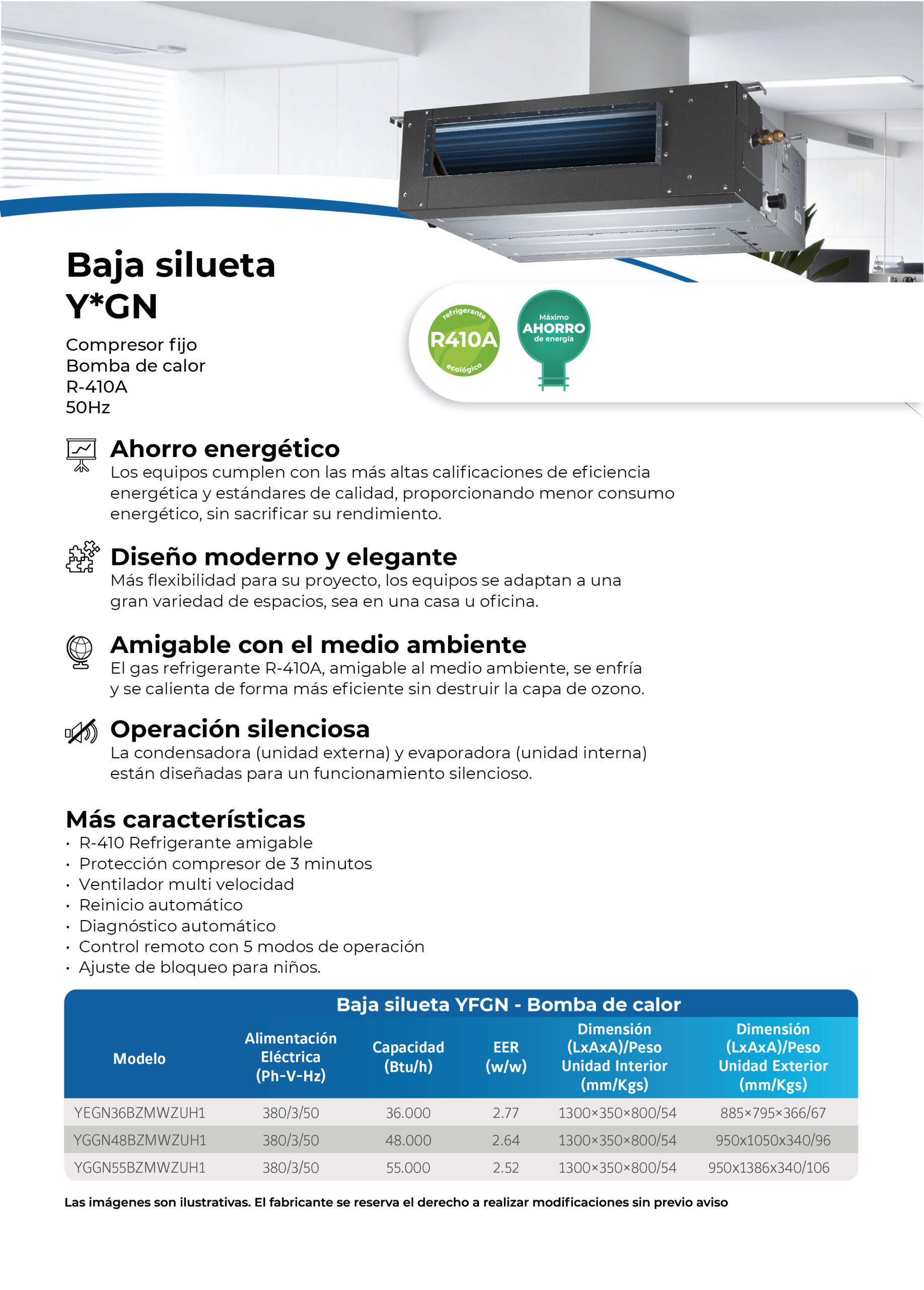 La condensadora (unidad externa) y evaporadora (unidad interna) están diseñadas para un funcionamiento silencioso.
