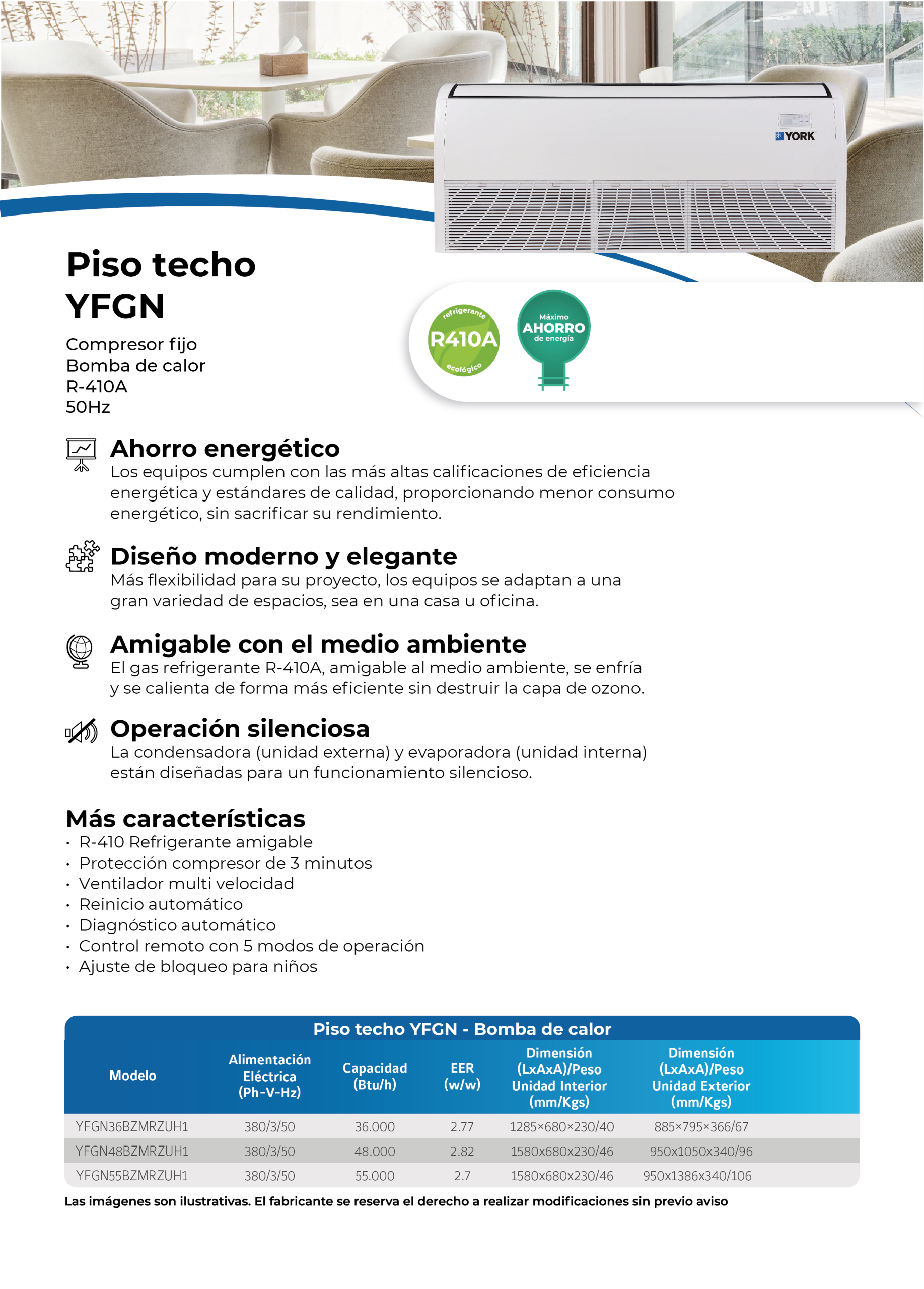 La condensadora (unidad externa) y evaporadora (unidad interna) están diseñadas para un funcionamiento silencioso.